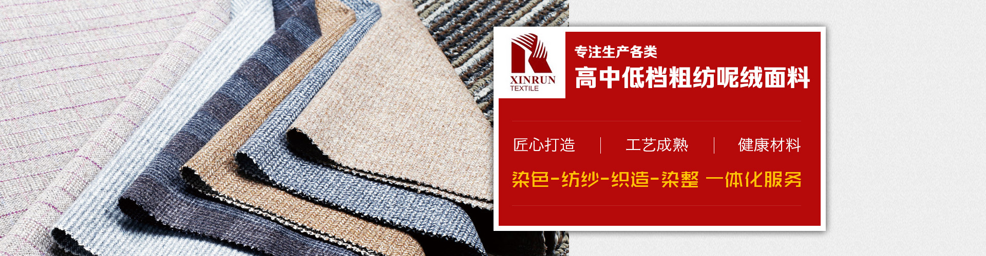 上海鑫潤紡織品有限公司是一家從事開發(fā),生產(chǎn),銷售為一體的毛紡面料公司,公司生產(chǎn)各類高中低檔粗紡呢絨面料,并下轄控股毛紡廠3家,擁有先進(jìn)的生產(chǎn)設(shè)備和的管理體系,不僅在國內(nèi)市場享有良好地信譽(yù),而且產(chǎn)品遠(yuǎn)銷美國,歐洲,俄羅斯,韓國,日本等不同國家,贏得了國外市場的一致好評(píng)。憑借優(yōu)良的品質(zhì),良好的信譽(yù),我公司還是ZARA,H&M,C&A,JACK&JONES,MANGO,TARGET,PROMODE,ORSAY等國外知名品牌的供應(yīng)商。